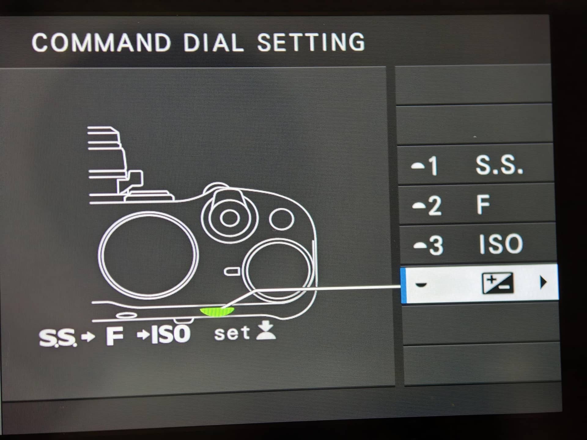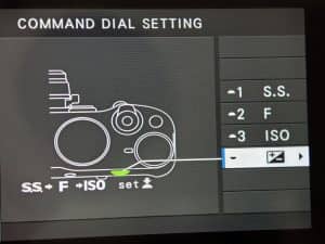 การตั้งค่าให้กับปุ่มบนตัวกล้องสามารถสั่งผ่านเมนู SET UP > BUTTON/DIAL SETTING > COMMAND DIAL SETTING ตามภาพ