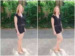 - ทำให้ลำตัวเอียงเล็กน้อย เกิดเส้นโค้ง (S-curve) ที่ดูอ่อนช้อย