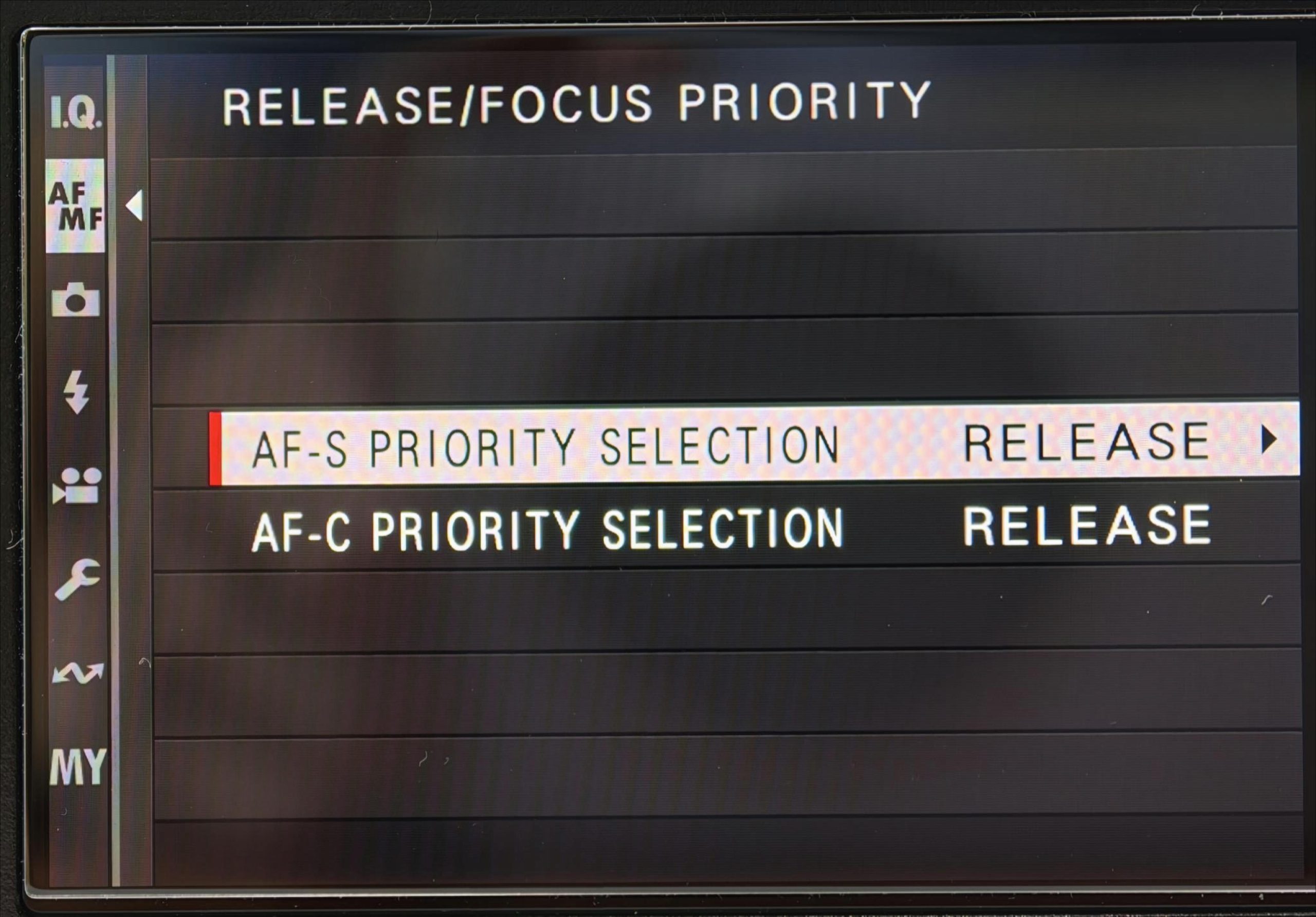 ตามปกติกล้องจะถูกตั้งค่าไว้ให้เราสามารถกดชัตเตอร์เพื่อถ่ายภาพได้เสมอทั้งที่ภาพนั้นยังไม่ได้ถูกโฟกัส โดยตั้งค่าไว้แบบ Release ตามภาพ แต่ถ้าต้องการให้มั่นใจว่าได้จัดโฟกัสไว้เรียบร้อยแล้วให้เปลี่ยนระบบเป็น Focus (แนะนำให้เปลี่ยนทั้ง AF-S และ AF-C เป็น Focus Priority)
